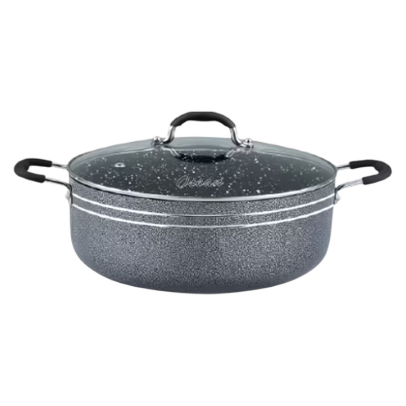 Ocean Stone Coating Non-Stick Shallow Cooking Pot – 40cm with Glass Lid (Black) Price in Bangladesh