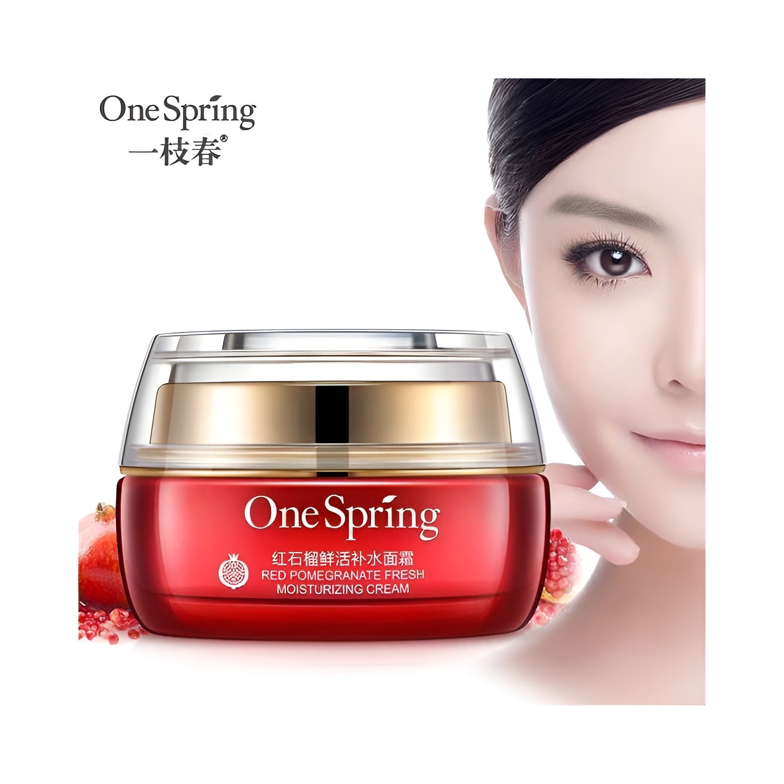 Feature? Replenishment and Moisturizing Tender beautiful skin gentle care Red Pomegranate Essence Shrink Pores? skin whitening?skin care skin Details: Brand: One Spring Origin: China Net Weight: 50g Shelf Life: 3 years Method of Use: 1 Clean your facial skin 2 Apply evenly to the face 3 From the middle to both side of the cheek gently massage to absorb