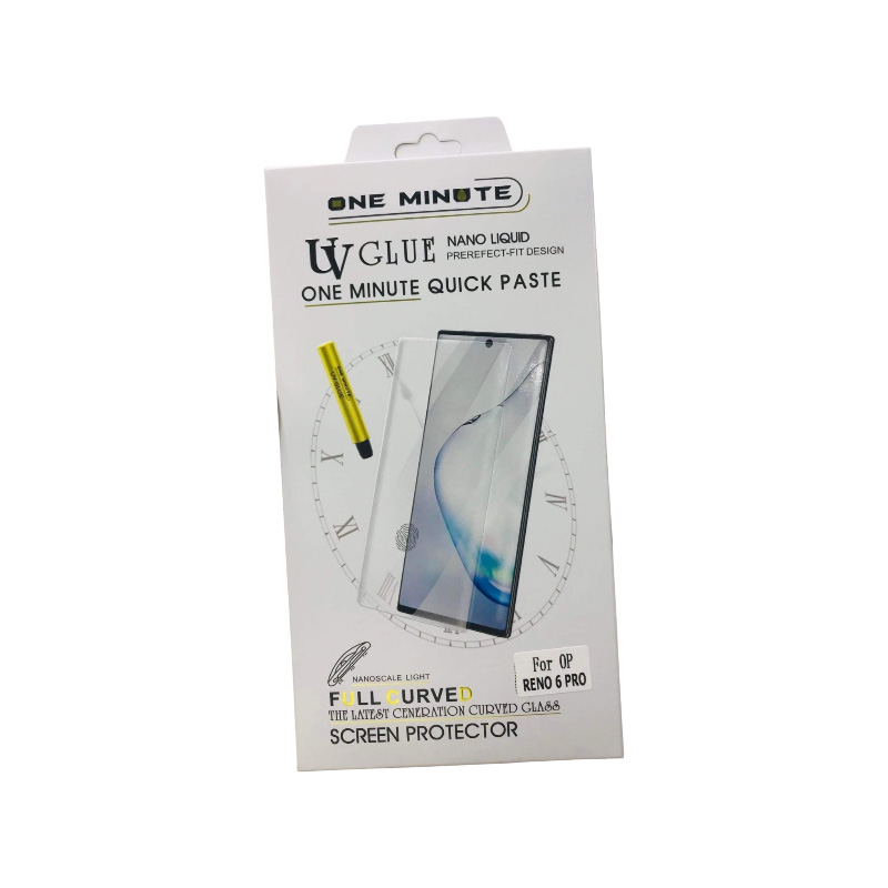 Oppo Reno 6 Pro 5G (PEPM00, CPH2249) (A+ GRADE) UV Tempered Glass Screen Protector Curved with Liquid Glue and UV Light -Transparent Clear