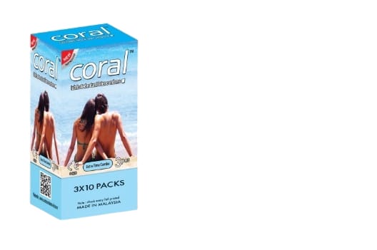 Coral – Extra Time Condom Lubricated Natural Latex Condom – Full Box – 3×10=30pcs maloasiya