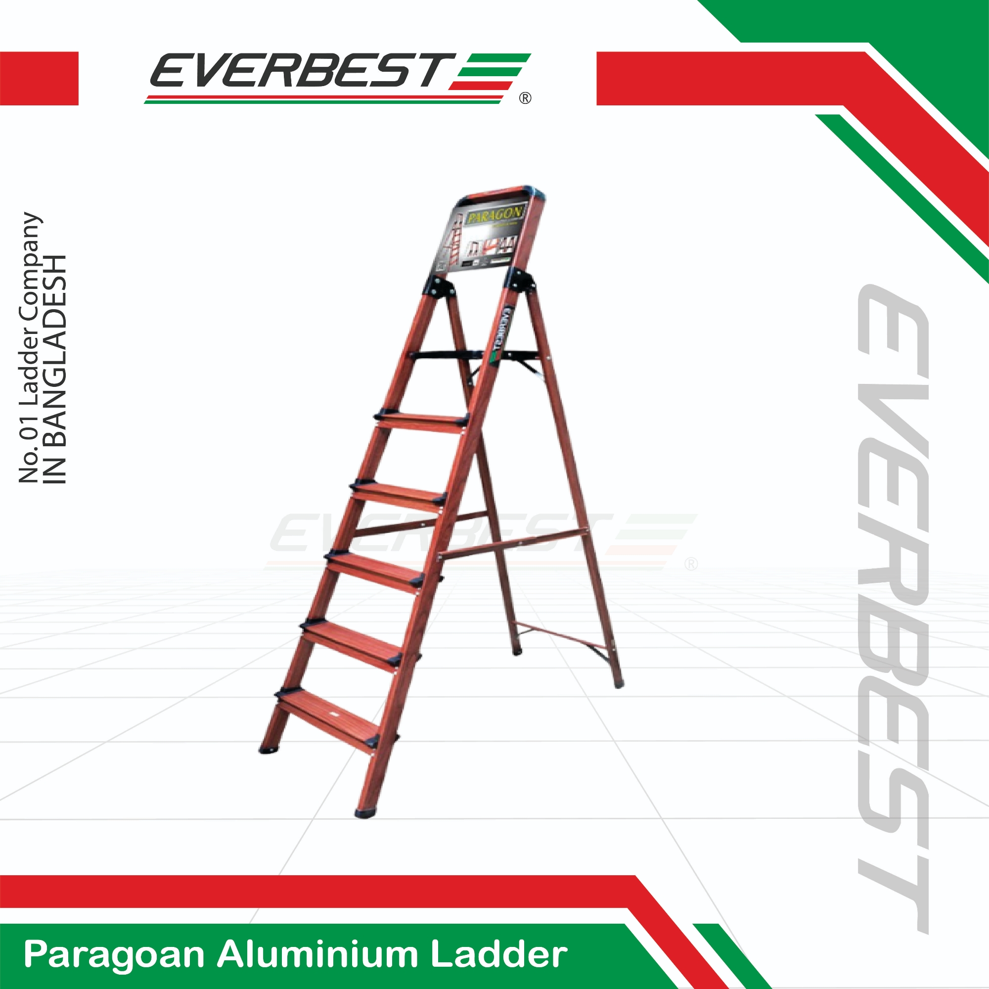 - The Paragon Premium Aluminium Ladder offers a strong, lightweight, and dependable solution for everyday climbing needs. Constructed using high-grade aluminium, it maintains durability while being easy to move and store. Available in 6 and 7 step options, this ladder features wide, anti-slip treads and a reinforced frame to provide secure footing and extra stability. Its rust-resistant build makes it suitable for both indoor and outdoor use, whether for household chores, cleaning, painting, or light commercial work. Designed by Everbest Ladder, the Paragon series ensures safety, user comfort, and long-lasting performance. Its foldable structure adds convenience, making it an excellent choice for homes and professional environments.