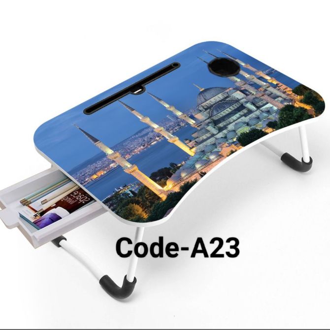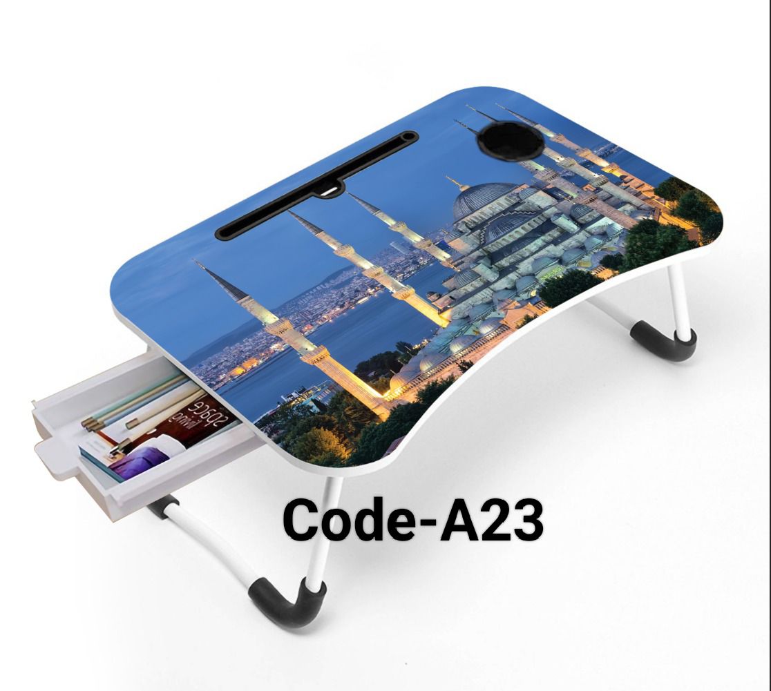 This is a premium quality, foldable and portable laptop table stand that can also be used as a study or bed table. Made from high-quality Partex board, this table is durable and sturdy. Its multi-functional design makes it perfect for use in a variety of settings, including the bedroom, living room, or office. The table is easy to set up and can be folded down for convenient storage when not in use. Its printing design adds a touch of style to any room. Whether you're working on your laptop, reading a book, or enjoying a meal, this table is the perfect solution for all your needs.