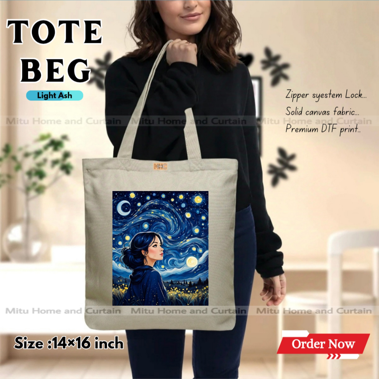 Premium Tote Bag with Zipper Canvas Tote Bag for Women Trendy Shopping Bag / College Bag / University Bag Tote Bag, Canvas Bag with Zipper