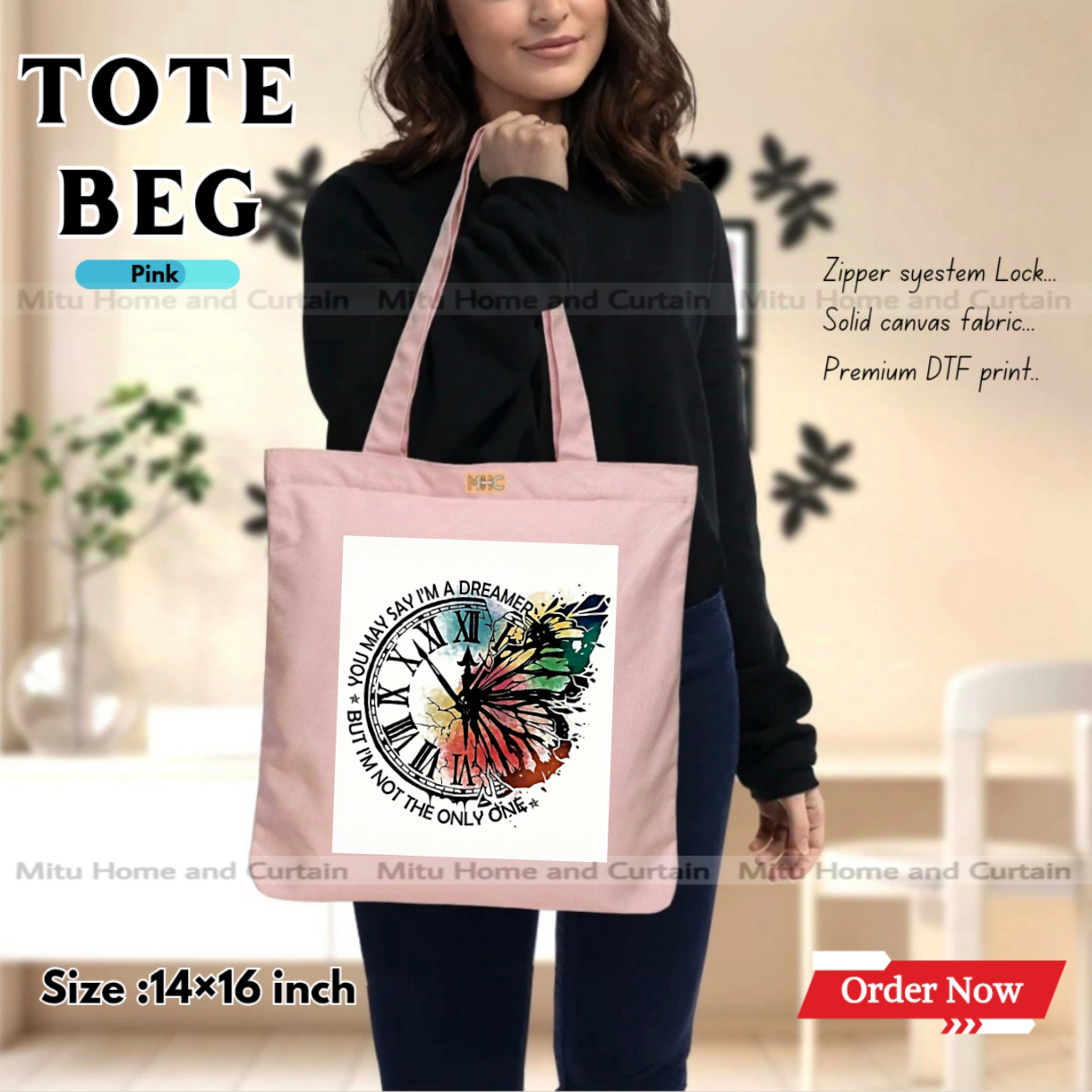 Premium Tote Bag with Zipper Canvas Tote Bag for Women Trendy Shopping Bag / College Bag / University Bag Tote Bag, Canvas Bag with Zipper