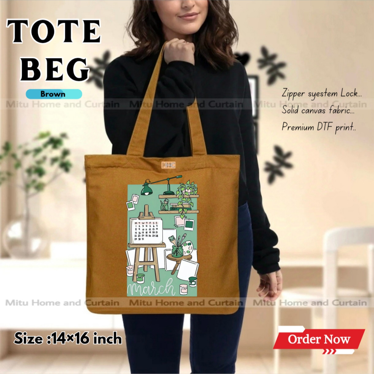 Premium Tote Bag with Zipper Canvas Tote Bag for Women Trendy Shopping Bag / College Bag / University Bag Tote Bag, Canvas Bag with Zipper