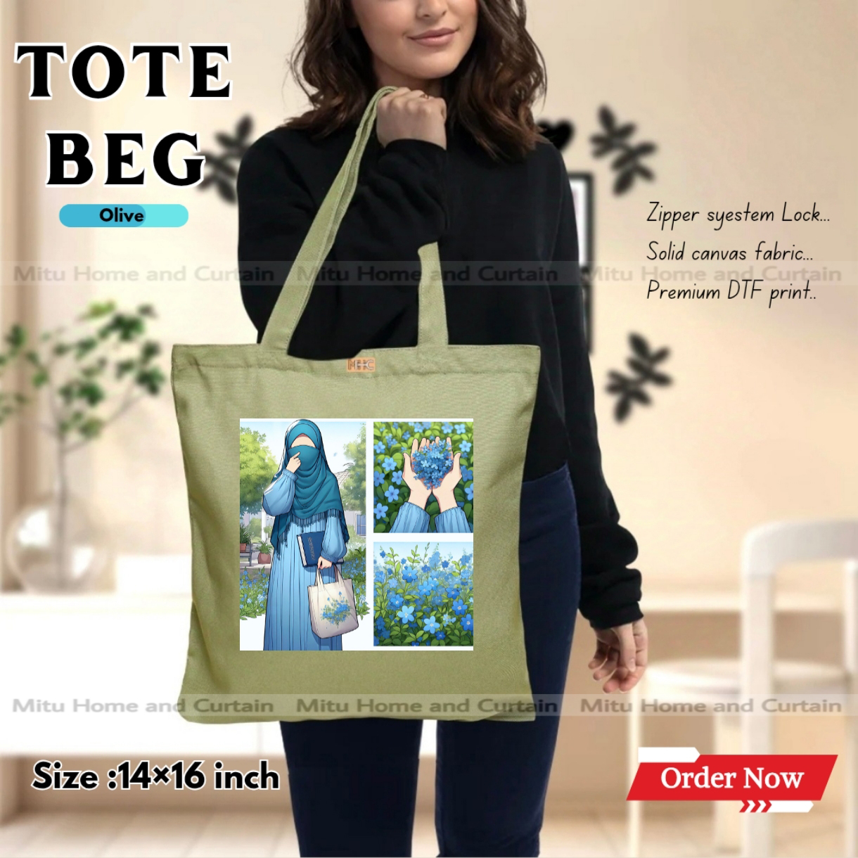 Made by full cotton canvas fabric with Primium DTF Print (one sided) in size of 8/9 inch.