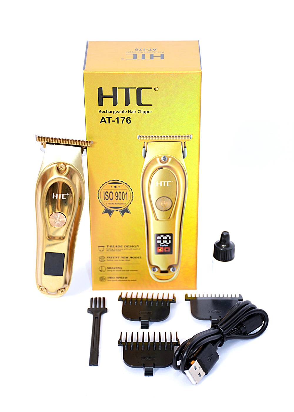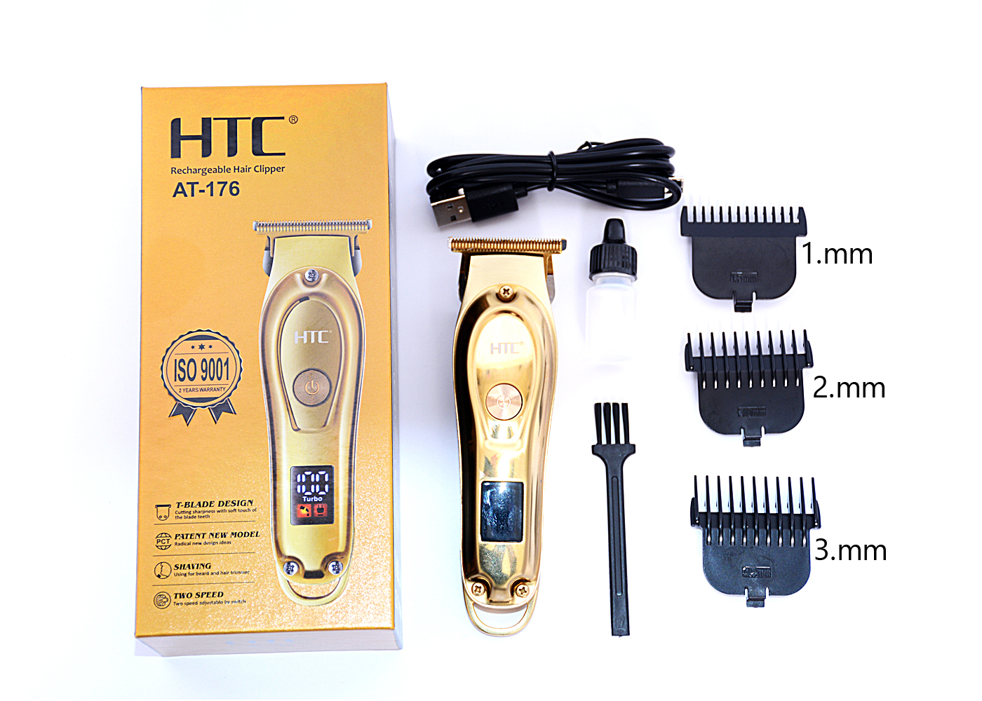 Products details of HTC AT-176 adjustable LCD professional hair clipper for men and women hair razor electric beard hair cutting trimmer.