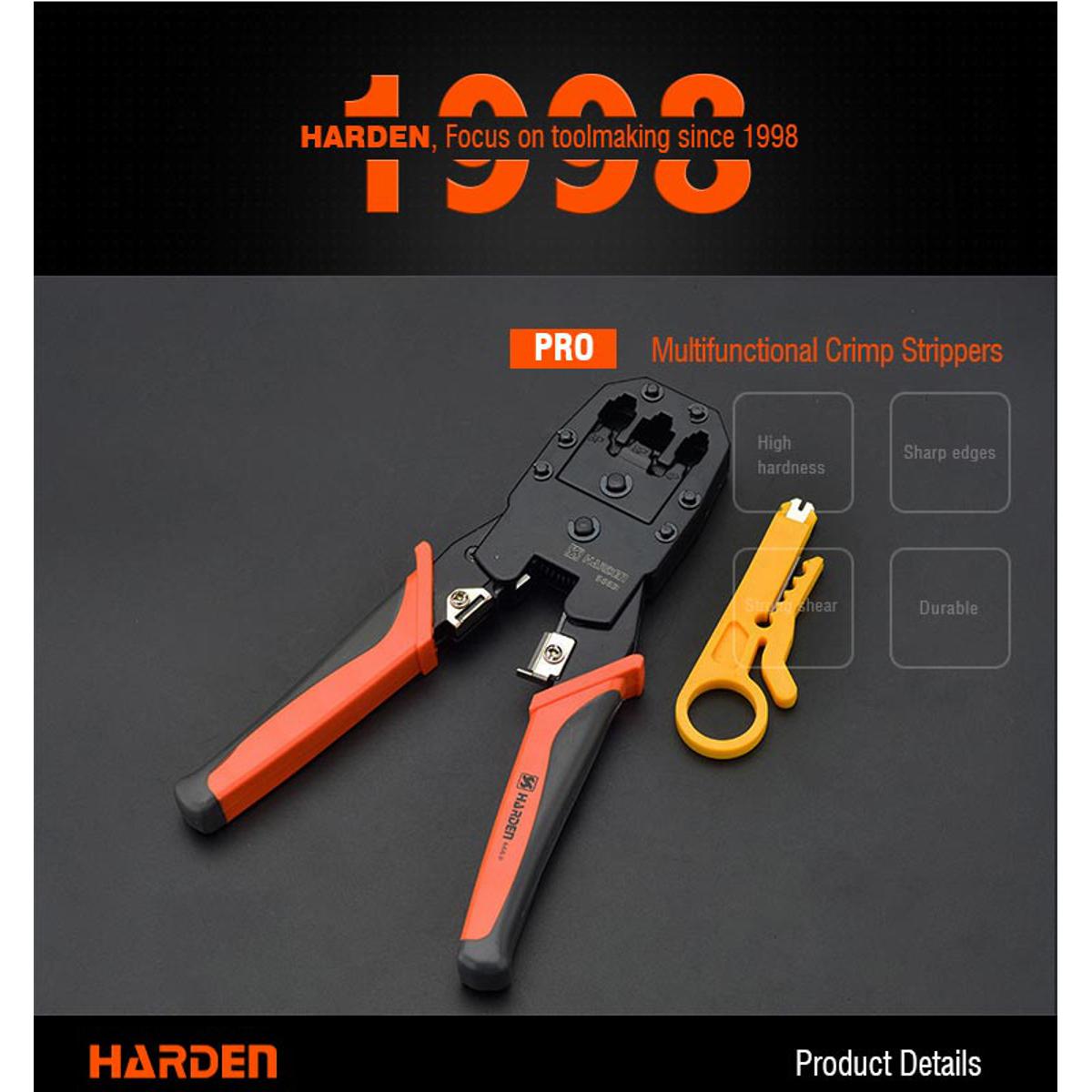Crimping Tool Cable Cutter And Stripper RJ45 RJ11. Crimp, Strip & Cut cables with this durable 3 way crimper for 8P8C, 6P6C, 4P4C, RJ 45, 11 connectors. Portable style with perfect shape. It won't damage the shelled-wire and works with high efficiency. The mouth of the press-pliers is made of magnetic steel, which is hard and durable. While using press-pliers, just insert the crystal top into its position and press it. For 4, 6, 8 poles modular connector.