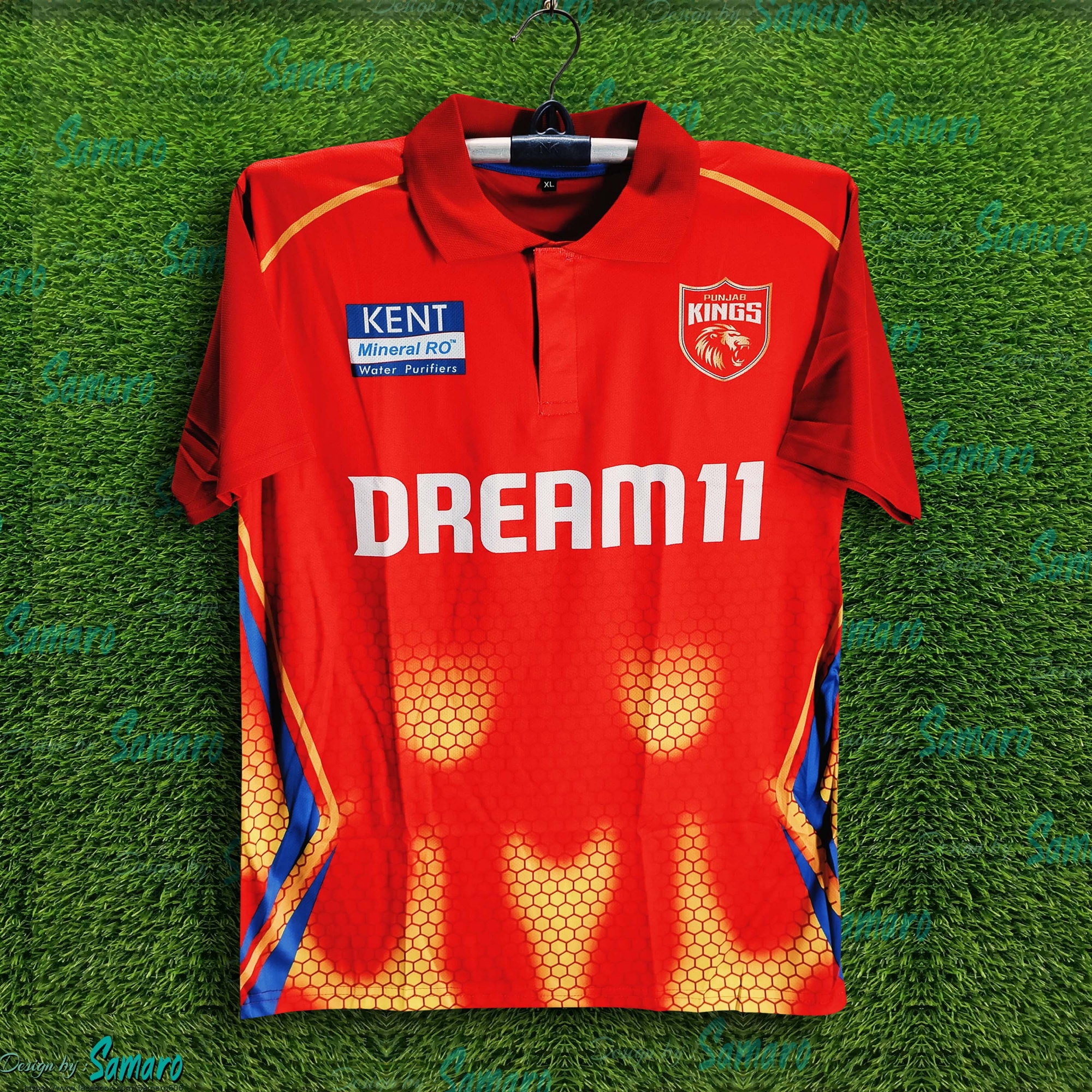 Punjab Kings Short Sleeve Collar IPL Jersey For Men - PK Half Sleeve Polo IPL Jersey - Punjab Jersey 2025