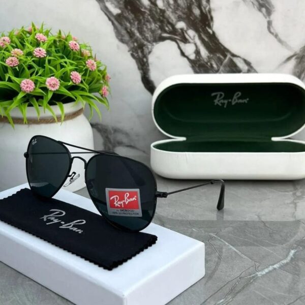 RAY-BAN Black & Black 3026 Oval Aviator Metal Trendy Hot Favourite Wintage Sunglass For Unisex.