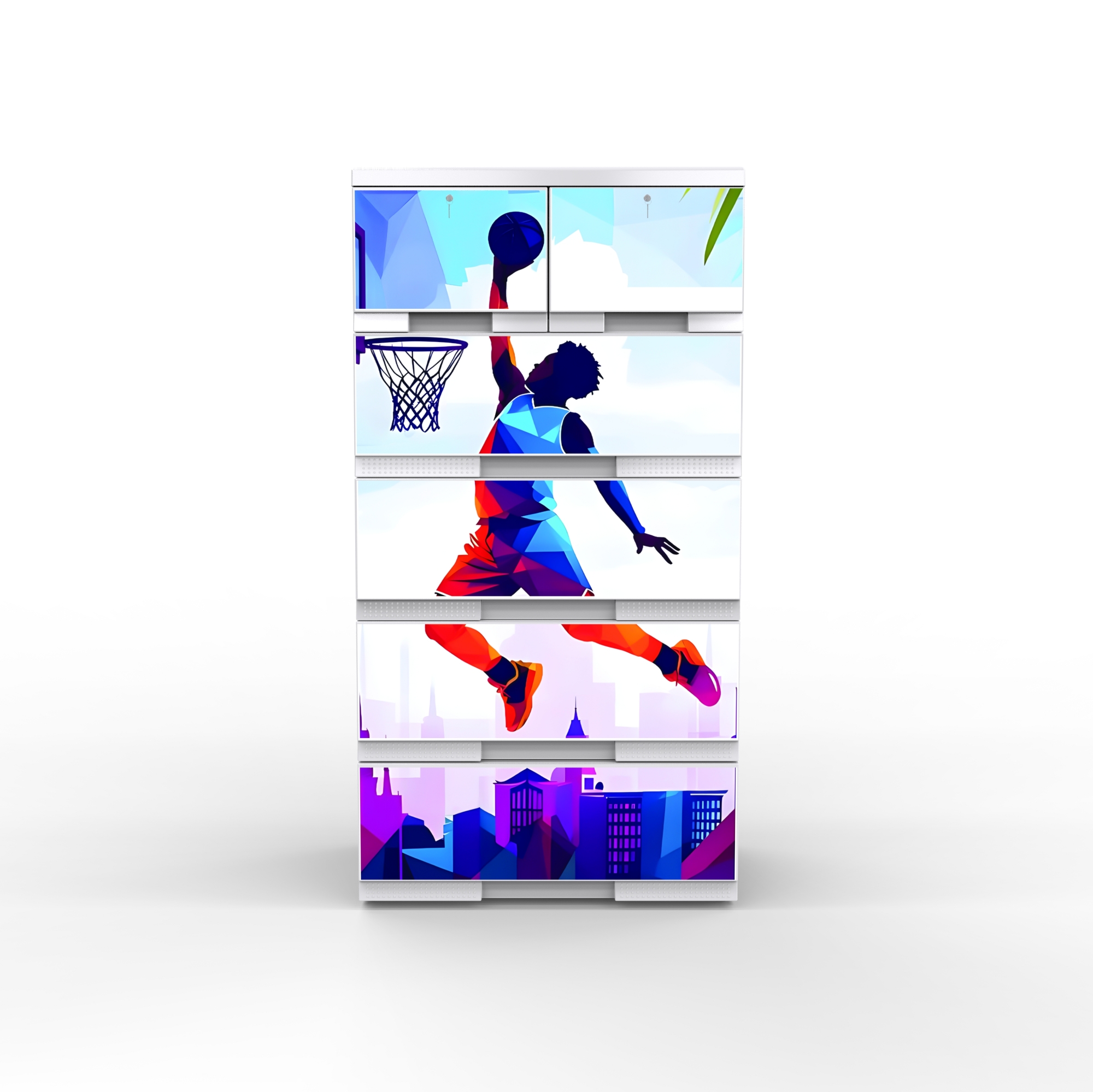 The wardrobe offers a spacious interior with five convenient drawers, making it ideal for organized storage. Its attractive front cover features an advanced HD design with a glossy, UV-protected 3D finish, adding a modern and elegant touch to any room.