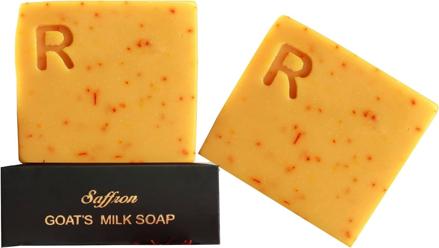 RiBANA Saffron Goat Milk Soap is a handcrafted, 100% natural soap designed to offer a luxurious, rejuvenating experience without the adverse effects of chemical skincare products. It deeply moisturizes the skin, thanks to the natural oils and organic goat's milk that penetrate to hydrate and improve skin texture. This soap also restores your natural glow by gently addressing dull skin, blemishes, uneven skin tones, and suntans, leaving your skin bright and glowing. With anti-aging properties, RiBANA goat milk soap helps minimize early signs of aging, heals wounds, fades scars, reduces wrinkles, and diminishes pigmentation, promoting youthful, fresh skin. Suitable for all skin types, from dry to oily and even sensitive, this soap is perfect for men and women of all ages and can be used on both the face and body.
