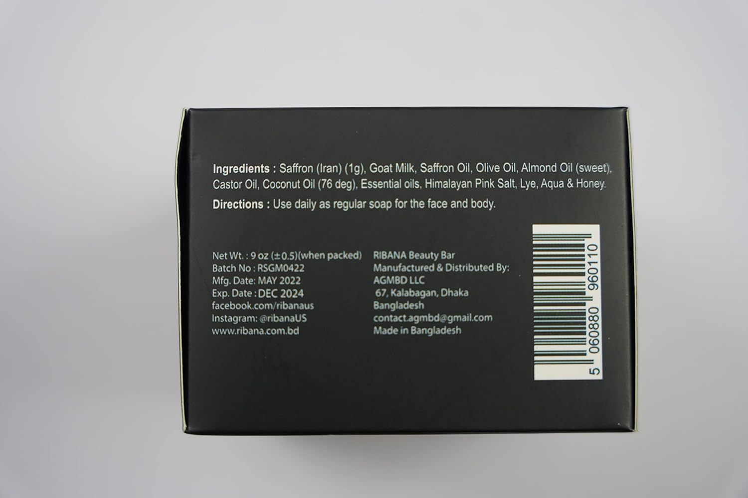 It contains Saffron (Iran) (1gm), Goat's milk, Saffron oil, Olive oil, Almond oil (sweet), Castor oil, Coconut oil (76deg), Essential oils, Himalayan pink salt, Lye, Aqua, and Honey.