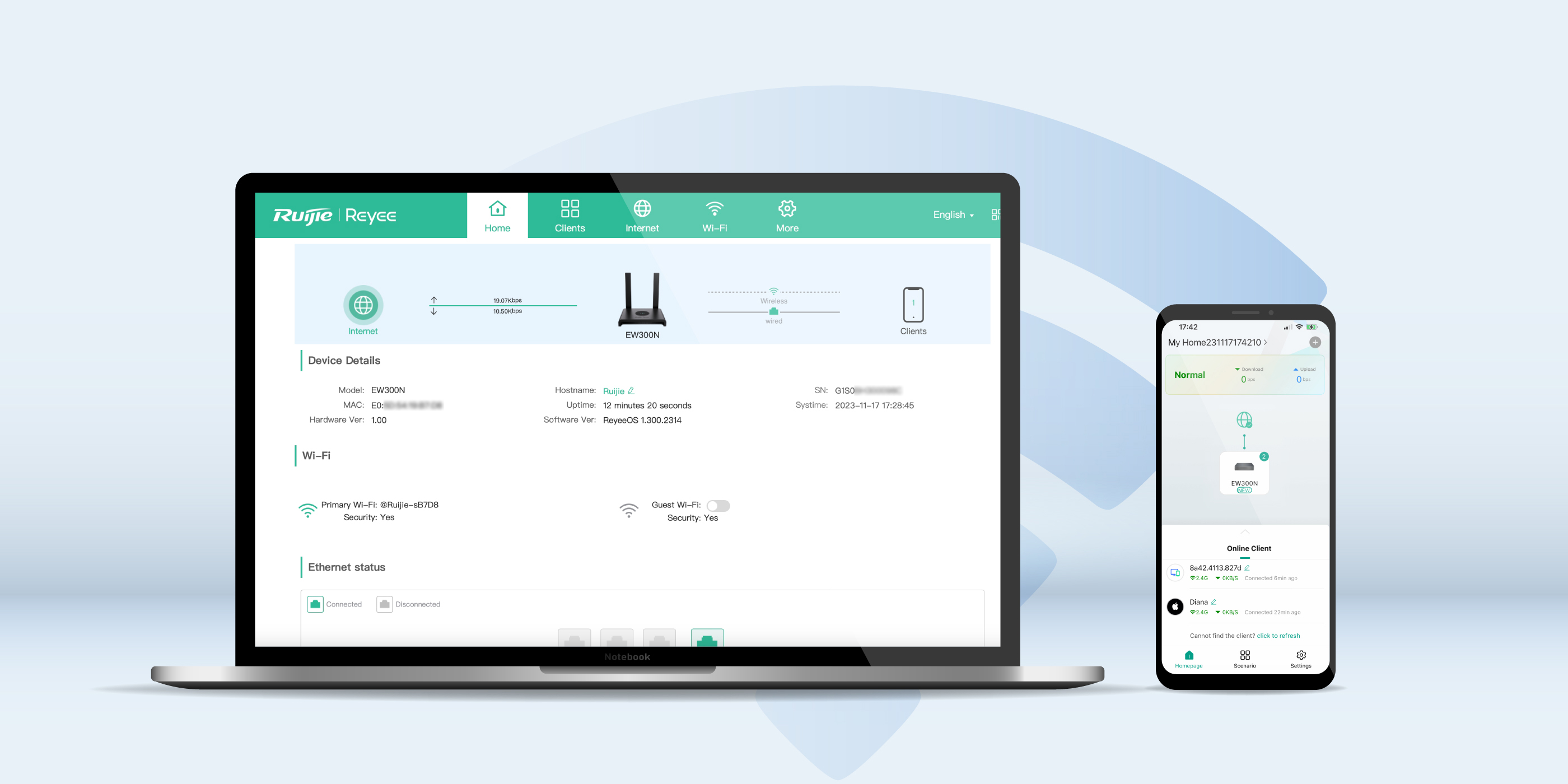 Set up your home network in Reyee Router App in two minutes. More Life-time Free functions are waiting for you to Explore, Experience, Expect.