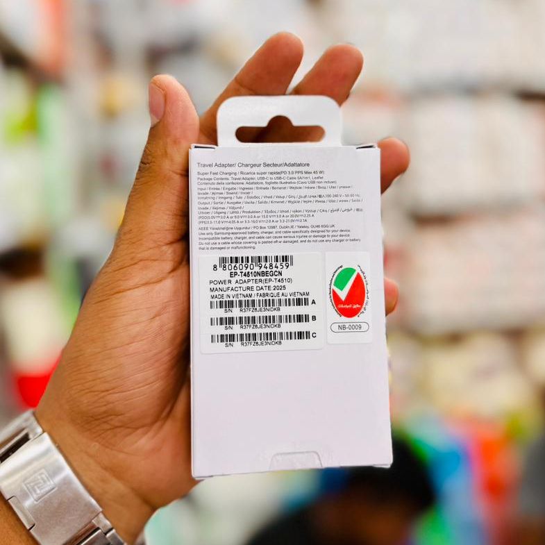 The Samsung 45W PD Adapter is designed with portability in mind. Its 2-pin plug design makes it ideal for use in Bangladesh, fitting securely into any standard socket. Its compact and lightweight design ensures that it can be easily carried in your bag or pocket, making it perfect for use at home, in the office, or while traveling. It’s a perfect travel companion for people on the go!