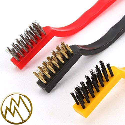 Introducing the Set Of 3 Pcs Mini Wire Brush Cleaning Tool Kit Brass - Kitchen Accessories. This kit includes three mini wire brushes designed for efficient cleaning in the kitchen. The brass construction ensures durability and effectiveness, making it suitable for various cleaning tasks. Ideal for removing tough stains and grime from kitchen utensils and specialty tools, this kit is a must-have for maintaining a spotless kitchen. The compact size and sturdy design make it convenient for everyday use.