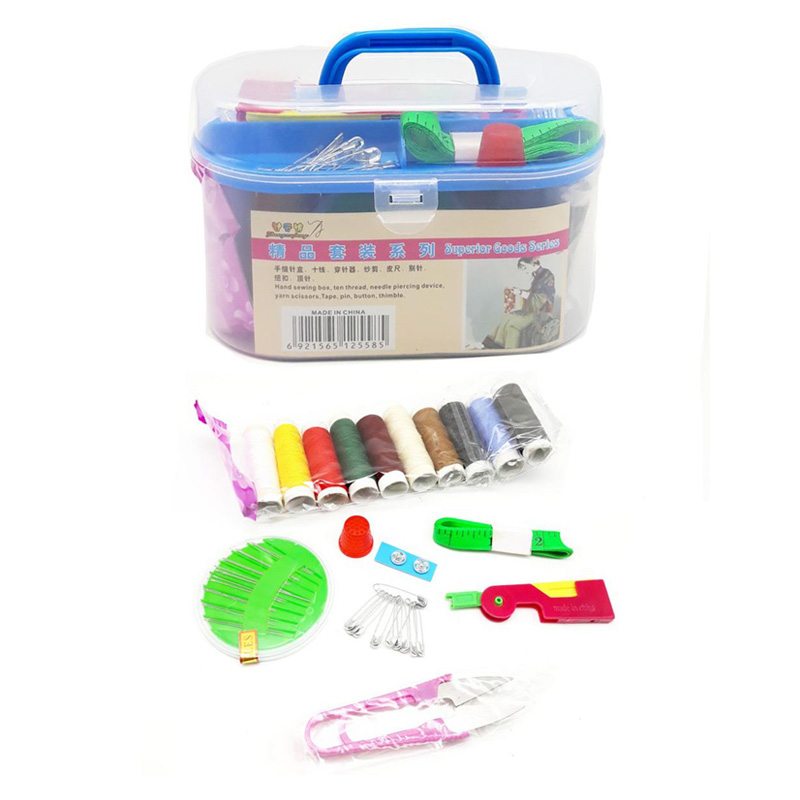 - রয়েছে: সুই, থ্রেড, সুই থ্রেডার, টেপ পরিমাপ, কাঁচি, নেইল ক্লিপার, থিম্বল, ইয়ারপিক, পিন, স্ন্যাপ ফাস্টেনার