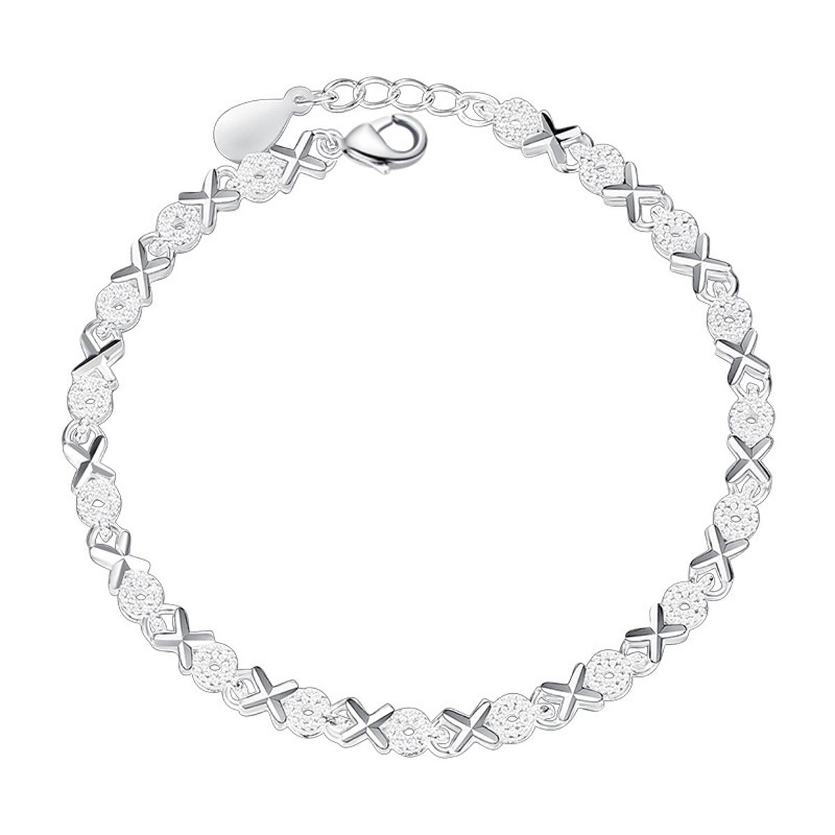 Silver Heart Charm Bracelet Bangle Handmade Party Jewelry for Women Girls Flower Bracelets - Bracelet For Women