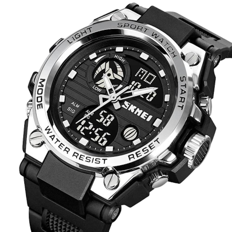 - The Skmei 2031 Silver Black Watch for Men combines elegance and durability in one stylish timepiece. Its modern silver and black design makes it versatile for both casual and formal settings. Featuring reliable quartz movement and scratch-resistant mineral glass, it delivers both accuracy and resilience. With water-resistant functionality, this watch is perfect for daily use or active lifestyles.