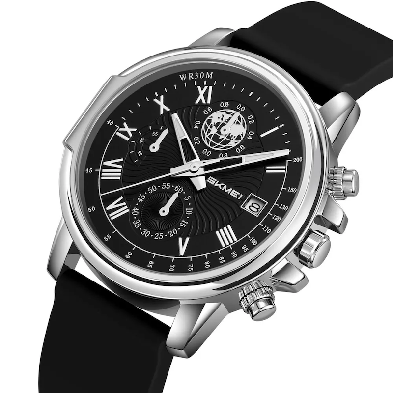 - The Skmei 2478 Black White Watch for Men combines a striking black and white design with practical features. This digital watch includes alarm, calendar, and stopwatch functions, making it ideal for both work and leisure. Built to be shock-resistant and water-resistant, it withstands daily wear and outdoor activities. The adjustable strap provides comfort and a secure fit for all-day use.