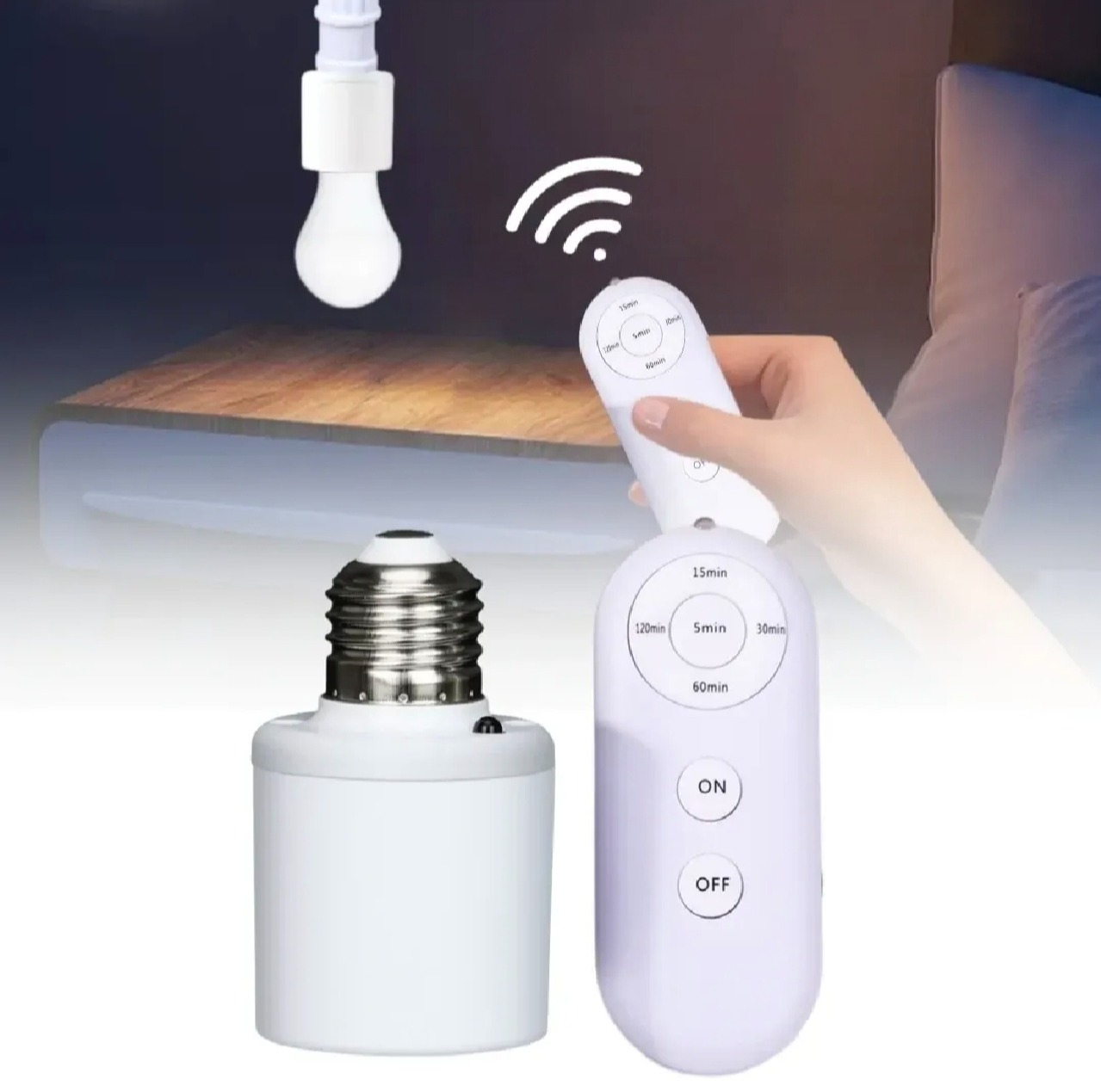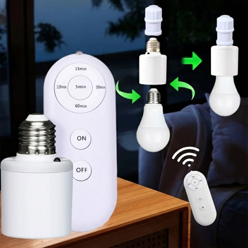 - Product details of Universal wireless intelligent remote control lamp holder • Wireless Remote Control :Control your lights from a distance with the wireless remote control feature. • Intelligent Light Bulb Base Socket :The intelligent light bulb base socket automatically turns on and off when you use the remote control. • 15m Range :With a range of 15m, you can easily control your lights from anywhere in the room. • Ready-to-Go :The product is ready-to-go, so you can start using it right away without any complicated setup or installation. Specificity: Voltage: 90V-220V 50/60HzMax. load: LED/CFL: 50W;Incandescent Bulb: 100WSocket: E27 Fixture to E27 Standard Screw-in Socket Remote Control distance: 15MTiming: 30min/60min Package Included: 1 x Lamp Holder 1x Remote Controller 1x Controller HolderNOTE:Remote control is not include 2xAAA battery