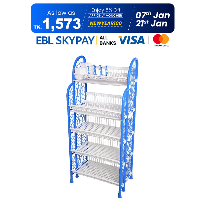 Premium 5-Step Double Tray Rack | Stylish Blue & White Design | Sturdy, Space-Saving Storage Solution for Home & Kitchen | Multi-Purpose Organizer with 5 Steps for Maximum Utility | Durable and Easy to Assemble