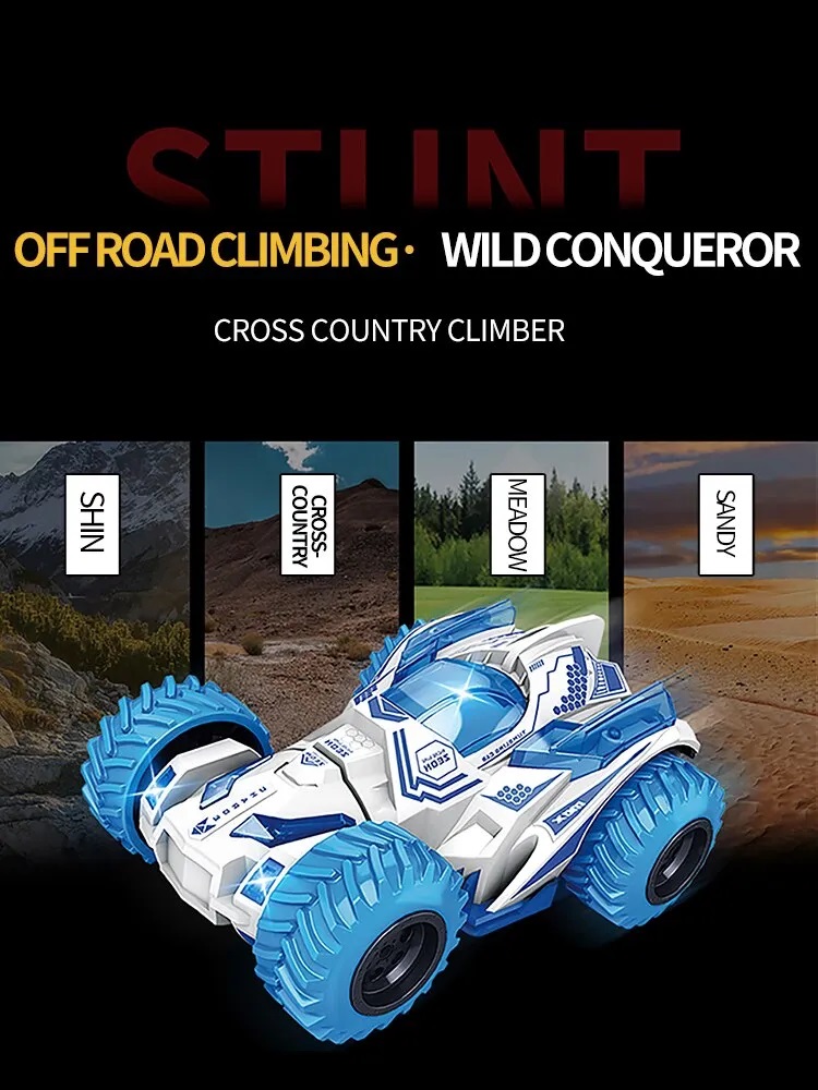 Stunt Spinning Toy Car BLUE.Kids Pull Back Car for 3 Year Old Boy Girl and Toddler.Up 360 Upright Rotation Game