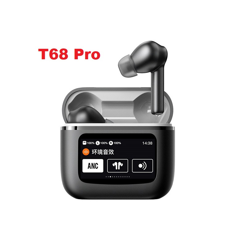 - T68 Pro Bluetooth TWS Wireless Earbuds Headphone Touch Control LCD Display Noise Reduction