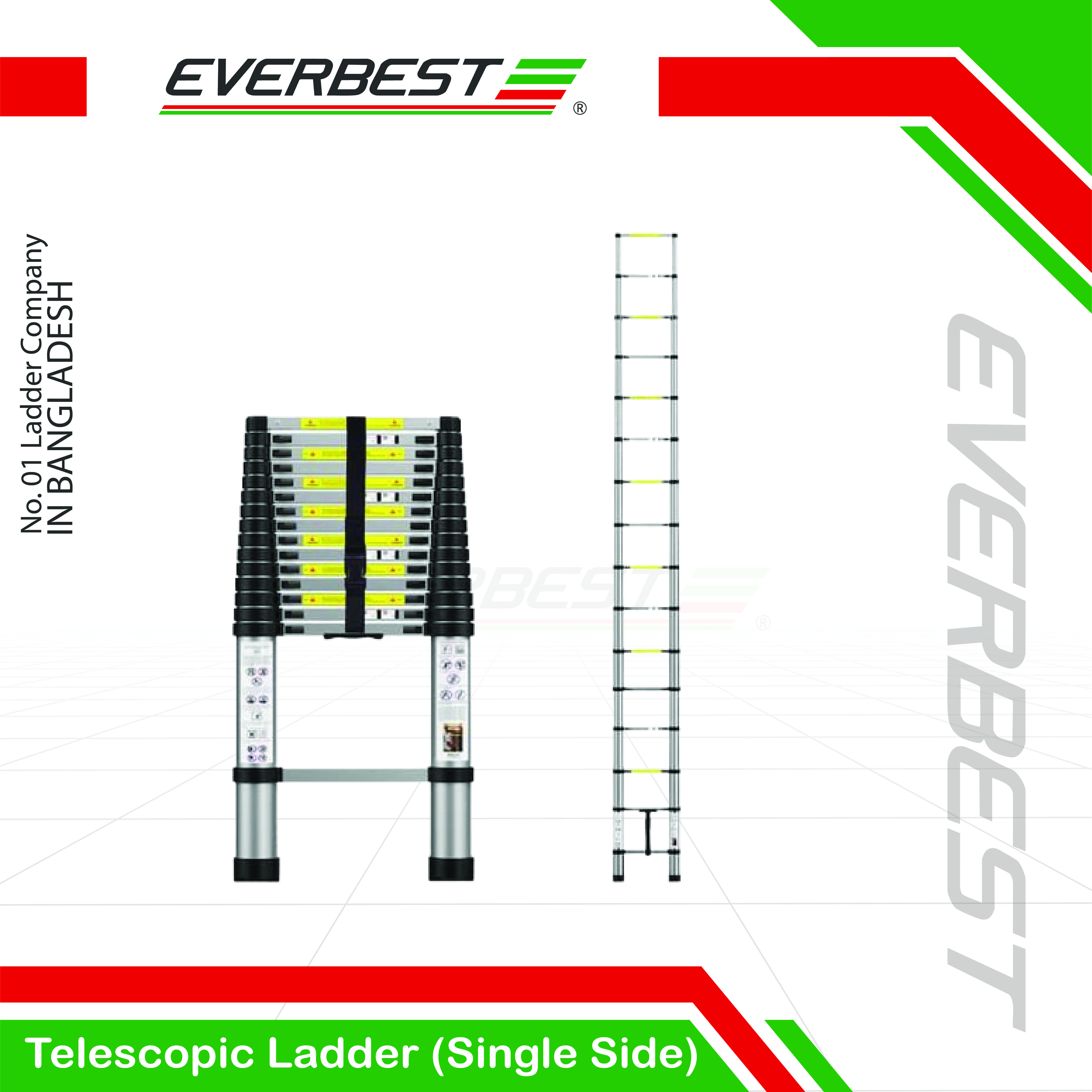 The Telescopic Ladder (Single Side) by EVERBEST LADDERS INDUSTRIES LTD represents a perfect combination of modern design, lightweight portability, and maximum strength — making it an essential tool for both home users and professional contractors in Bangladesh.