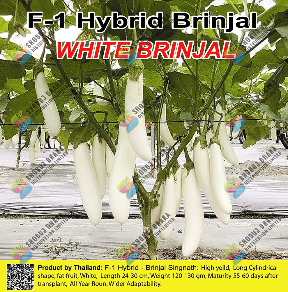 Thailand F1 Hybrid White Brinjal 0.5gm Intact Pack
