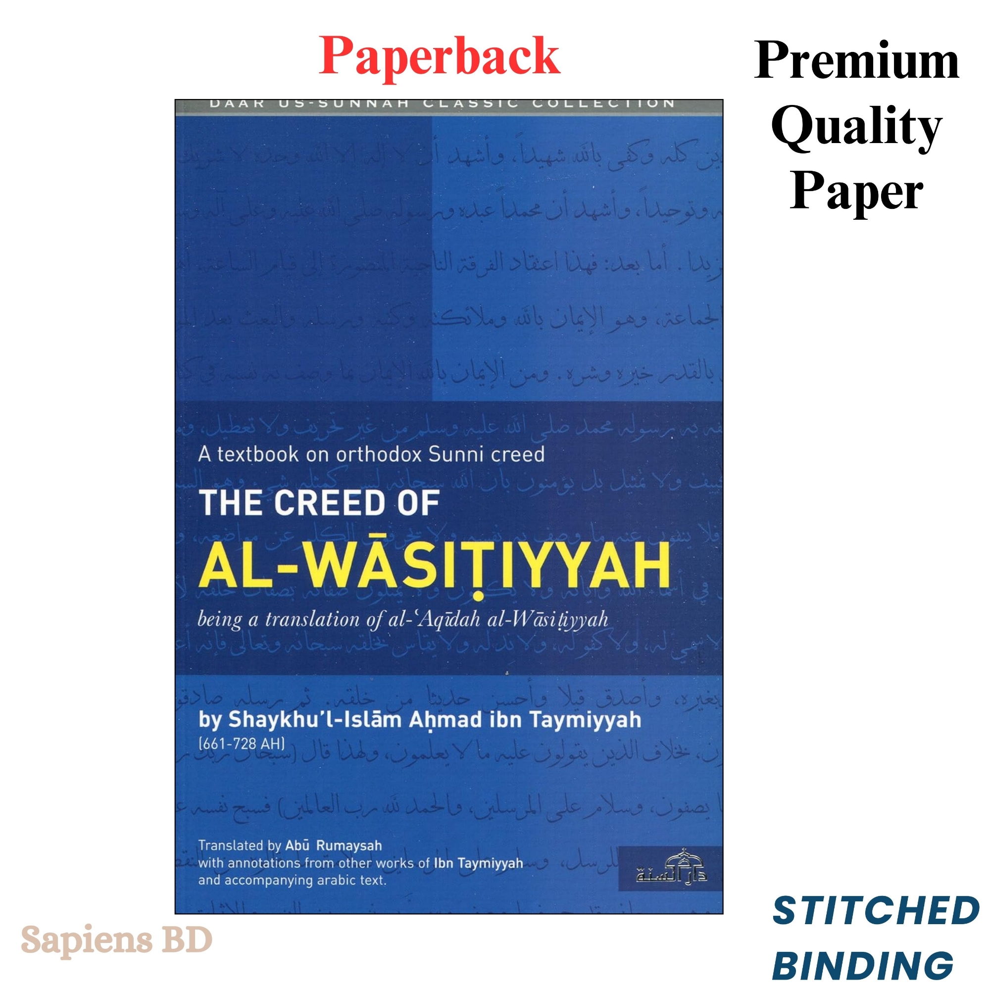 A textbook on orthodox Sunni creed The Creed of Al-Wasitiyyah by Shaykuhl- Islam Ibn Taymiyyah (661-728 AH) being a translation of al-Aqidah al-Wasitiyyah Written in response to a request from a Shafi Judge from Wasit, Iraq, Ibn Taymiyyah penned this creed encapsulating the belief taught by the Prophet Muhammad Peace be upon him. In his words, 'this is (an exposition of) the belief of the saved group, those who are aided until the establishment of the Hour: Ahlul'l-Sunnah wa'l-Jama'ah.' The tract is relatively brief but comprehensive, marked by its terse and precise statements. As one would expect of the author, the work draws heavily on the Qur'an and authentic hadiths of the Messenger. It commences by listing articles of belief concerning Allah, in particular His Names and Attributes and the principles which must be applied to understand them. It then moves on to discuss topics such as the Qur'an, seeing Allah, the punishment of the grave, some of the descriptions of the Last day and the events that will occur therein, the divine decree, faith, the Companions and the Awliya. The author, Taqi ud-Din Abu'l-Abbas Ahmad Ibn al-Halim ibn Abd al-Salam Ibn Taymiyah al-Hanbali was born in , 661 AH (1263 AC) in Haran, which is now in Eastern Turkey, near the border of northern Iraq.. His family had long been renowned for its learning , among his teachers, was Shams ud-Din Al-Maqdisi, first Hanbali Chief Justice of Syria following the reform of the judiciary by Baibars. The number of Ibn Taimiyah's teachers exceeds two hundred. Ibn Taimiyah was barely seventeen, when Qadi Al-Maqdisi authorized him to issue Fatwa (legal verdict). Qadi remembered with pride that it was he who had first permitted an intelligent and learned man like Ibn Taimiyah to give Fatwa. At the same age, he started delivering lectures. When he was thirty, he was offered the office of Chief Justice, but refused, as he could not persuade himself to follow the limitations imposed by the authorities.