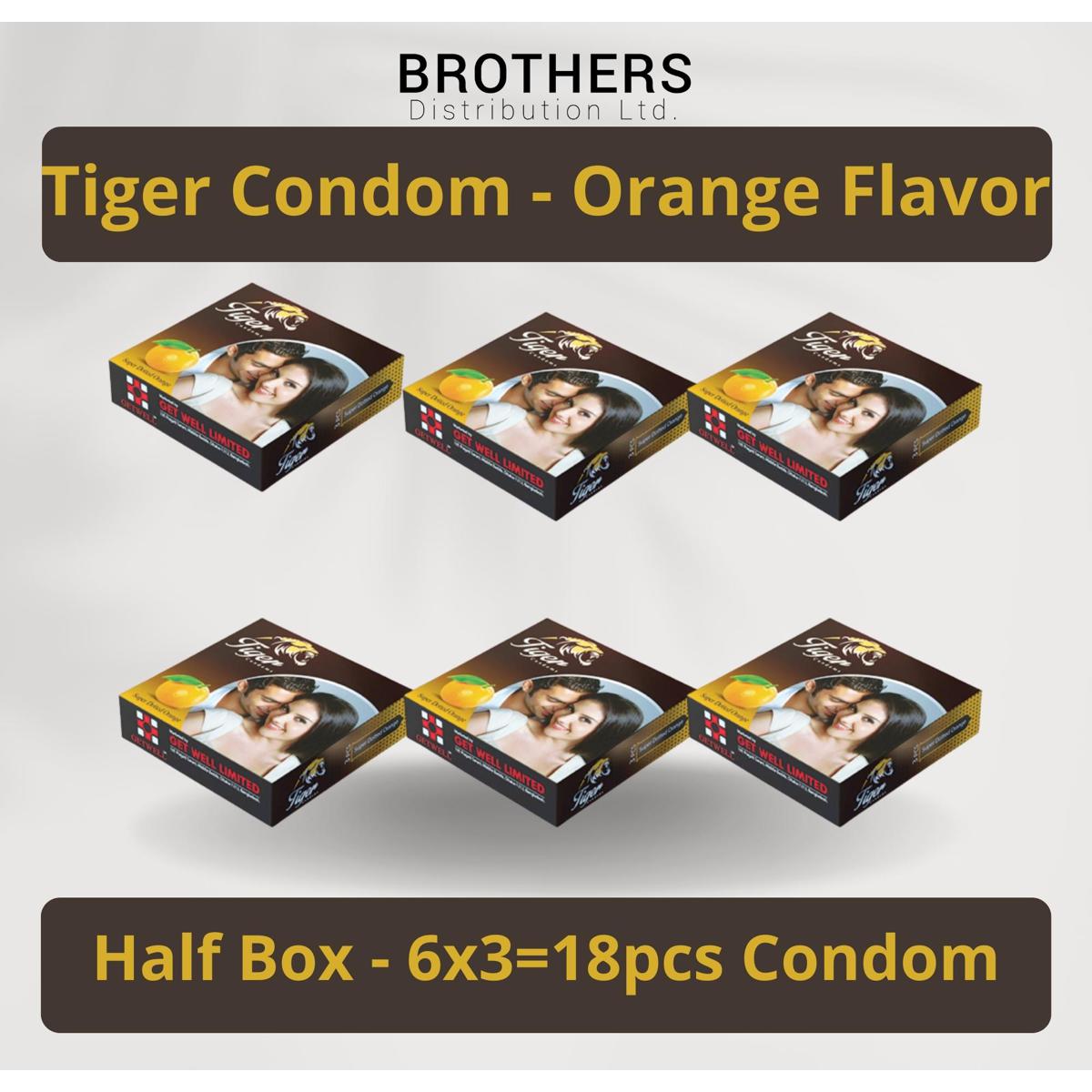 Tiger Condom - Dotted Condoms Orange Flavour - Half Box - 3x6=18pcs