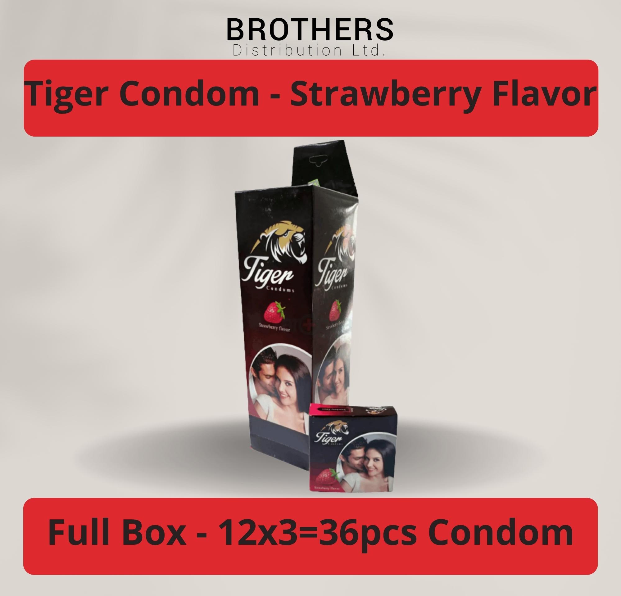 - Tiger Condom - Dotted Condoms Strawberry Flavour - Full Box - 3x12=36pcs