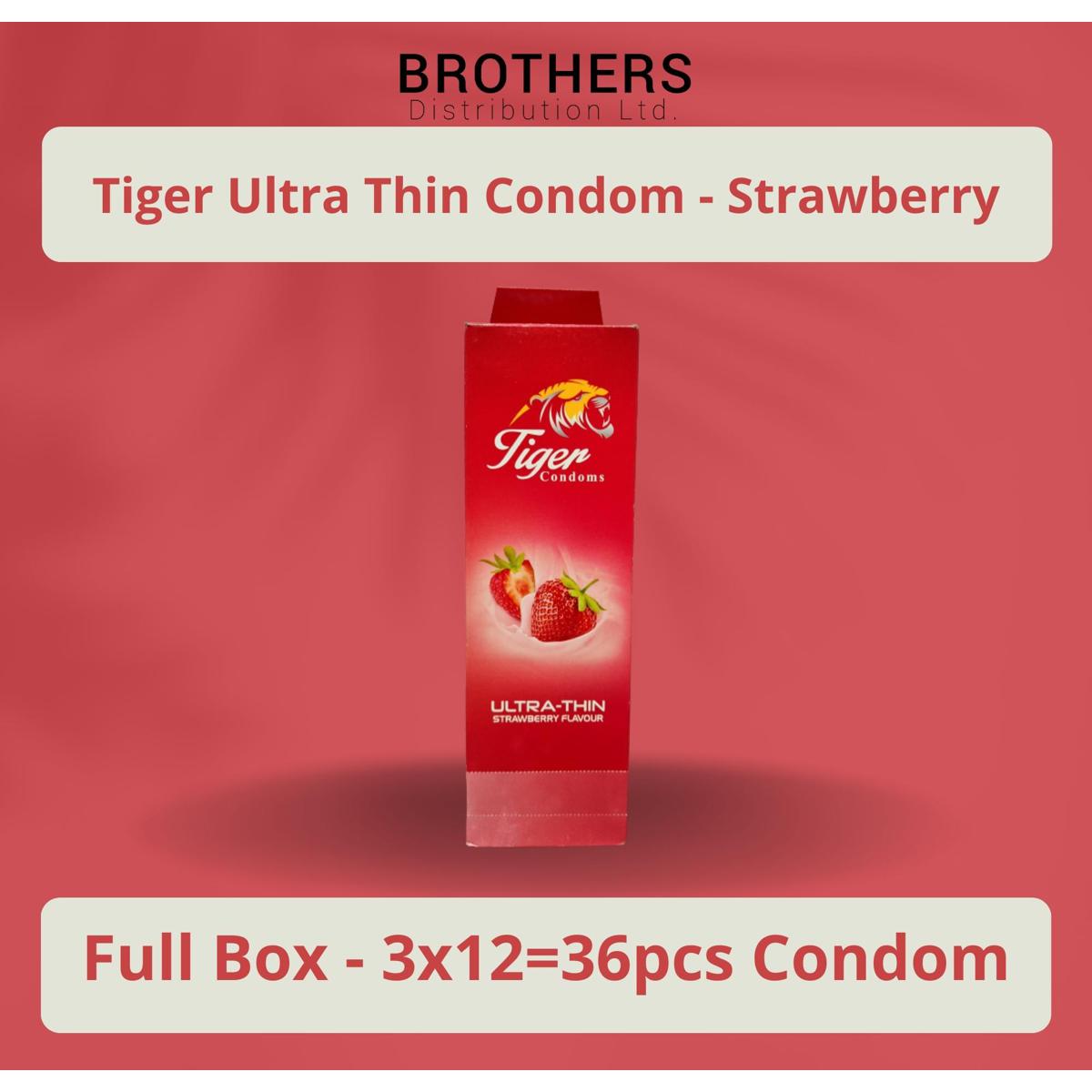 - Tiger Condom - Ultra Thin Condoms Strawberry Flavour - Full Box - 3x12=36pcs