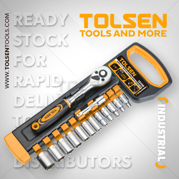 - This Tolsen 14 Pcs Ratchet Handle with socket set 1/4" Drive 15150 is a professional quality tool set that is perfect for DIY enthusiasts and professionals alike. The set includes 12 metric CrV sockets ranging from 4mm to 14mm, a 50mm Cr V extension bar, and a two-component ergonomic ratchet handle with quick release and 72T. The set is packed in a plastic hanger with a color label for easy storage and organization. The Tolsen brand is known for its high-quality tools, and this set is no exception. Whether you're working on a home improvement project or a professional job, this set has everything you need to get the job done efficiently and effectively.