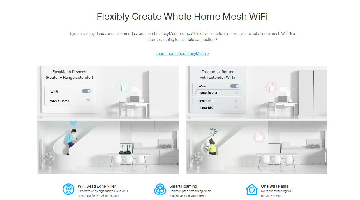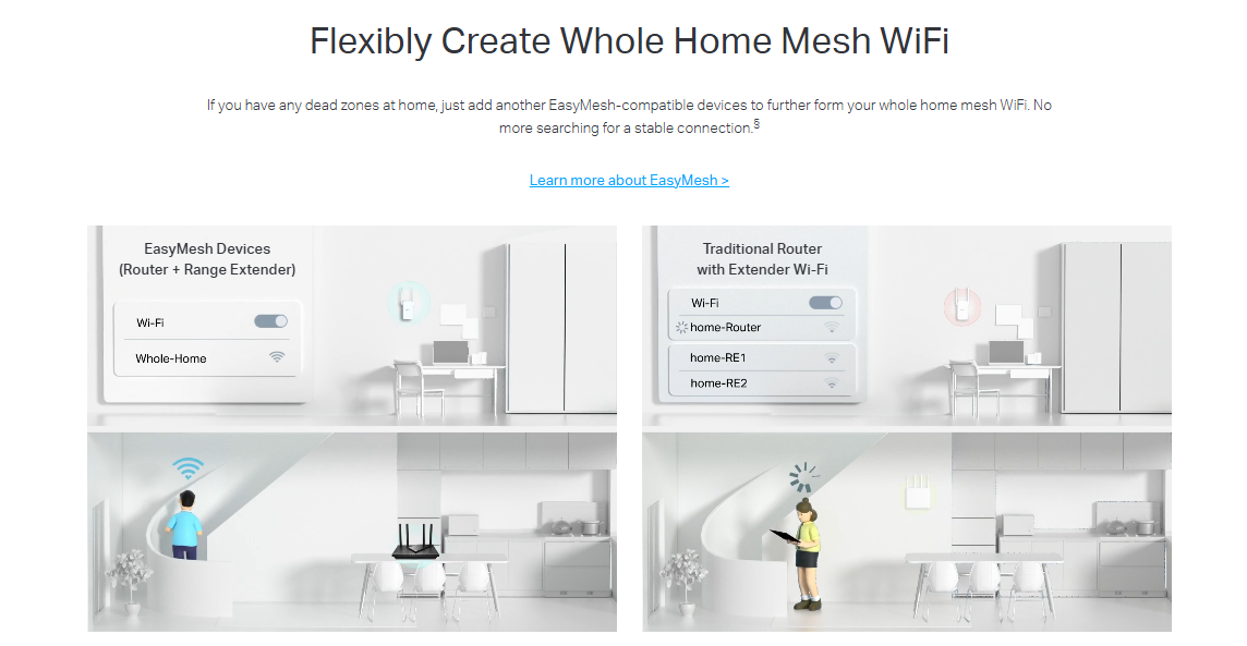 Without replacing your existing devices or buying a whole new WiFi ecosystem, OneMesh™ helps you create a more flexible network that covers your entire home with TP-Link OneMesh™ products.