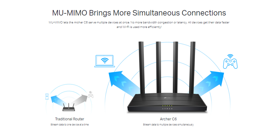 MU-MIMO Technology – Simultaneously transfers data to multiple devices for 2× faster performance