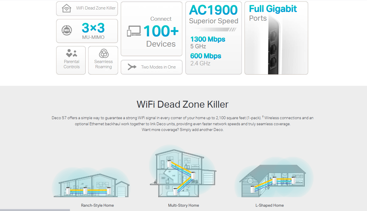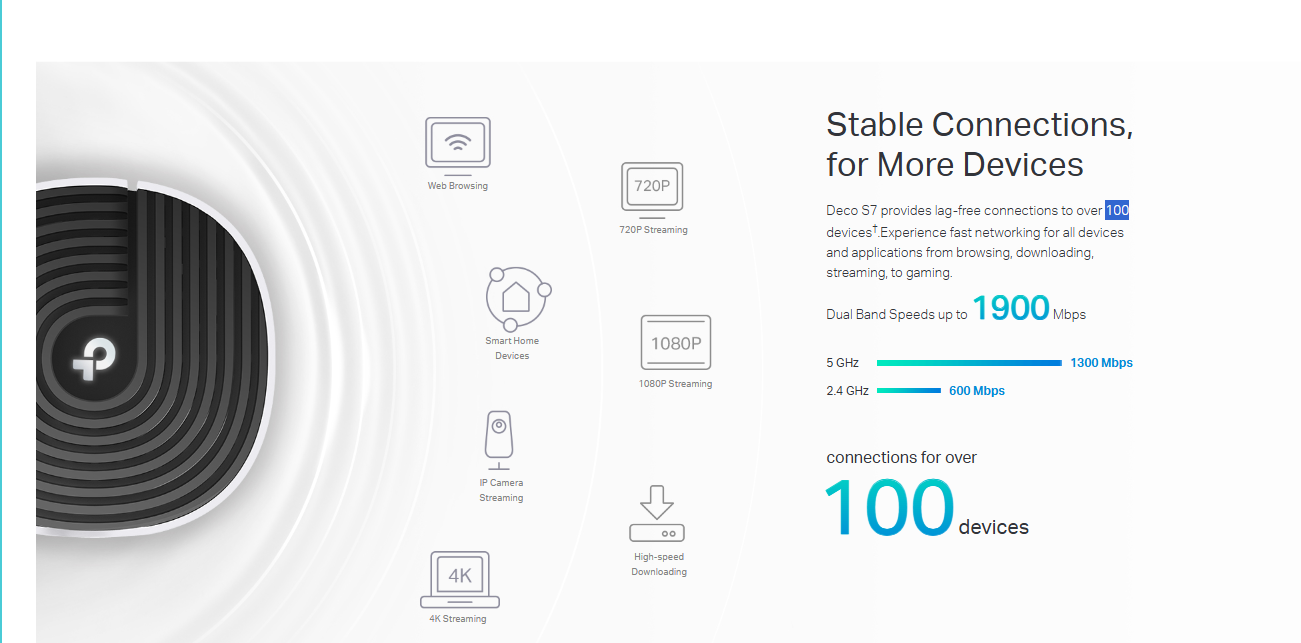 TP-Link Deco S7 AC1900 1 Pack Whole Home Mesh Wi-Fi System Smart Router 100 Device Capacity 1900 Mbps Dual-Band with Gigabit Ports