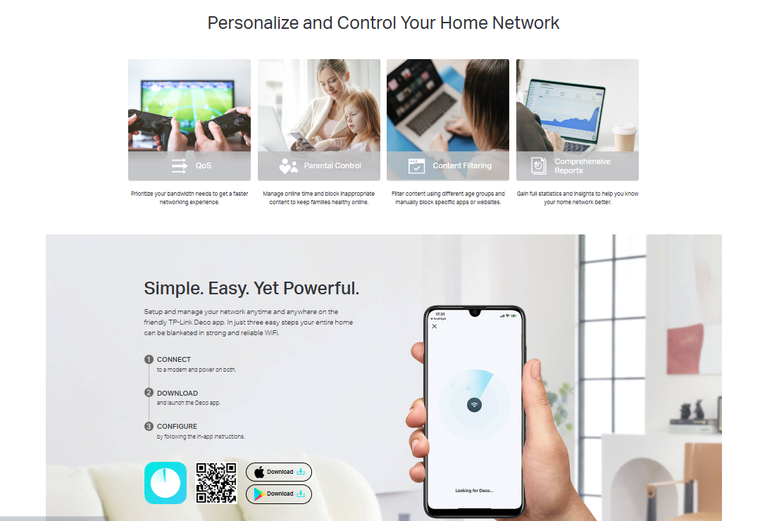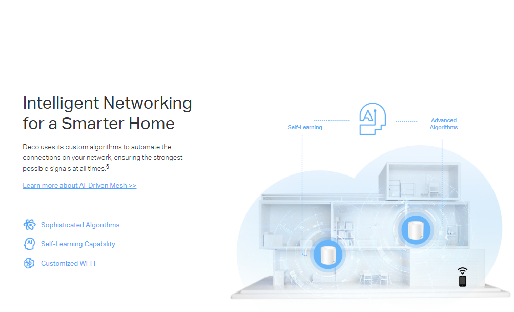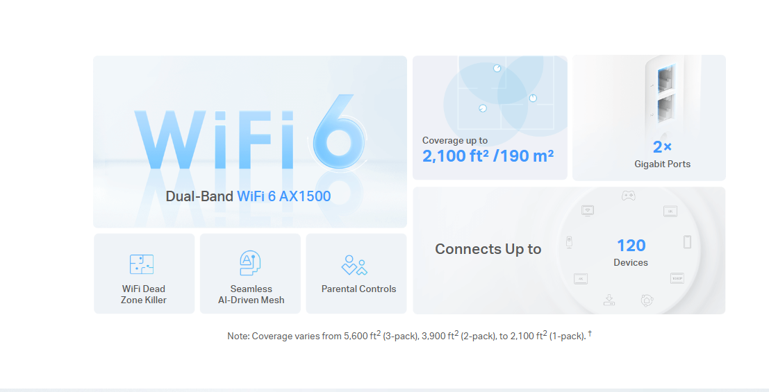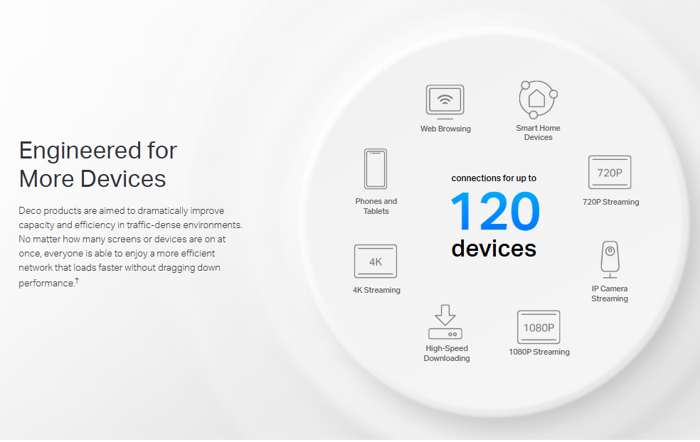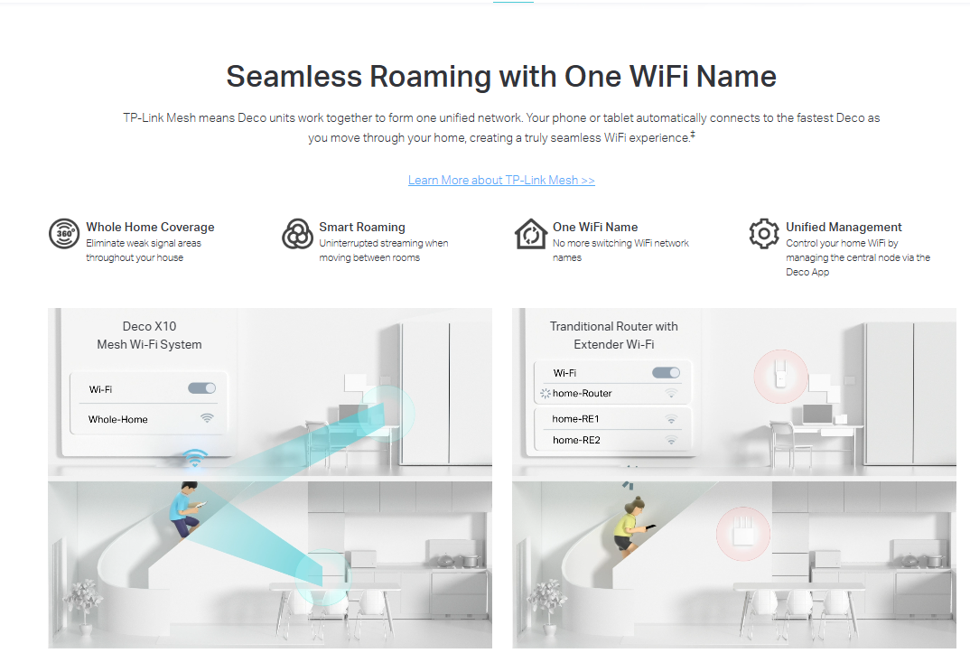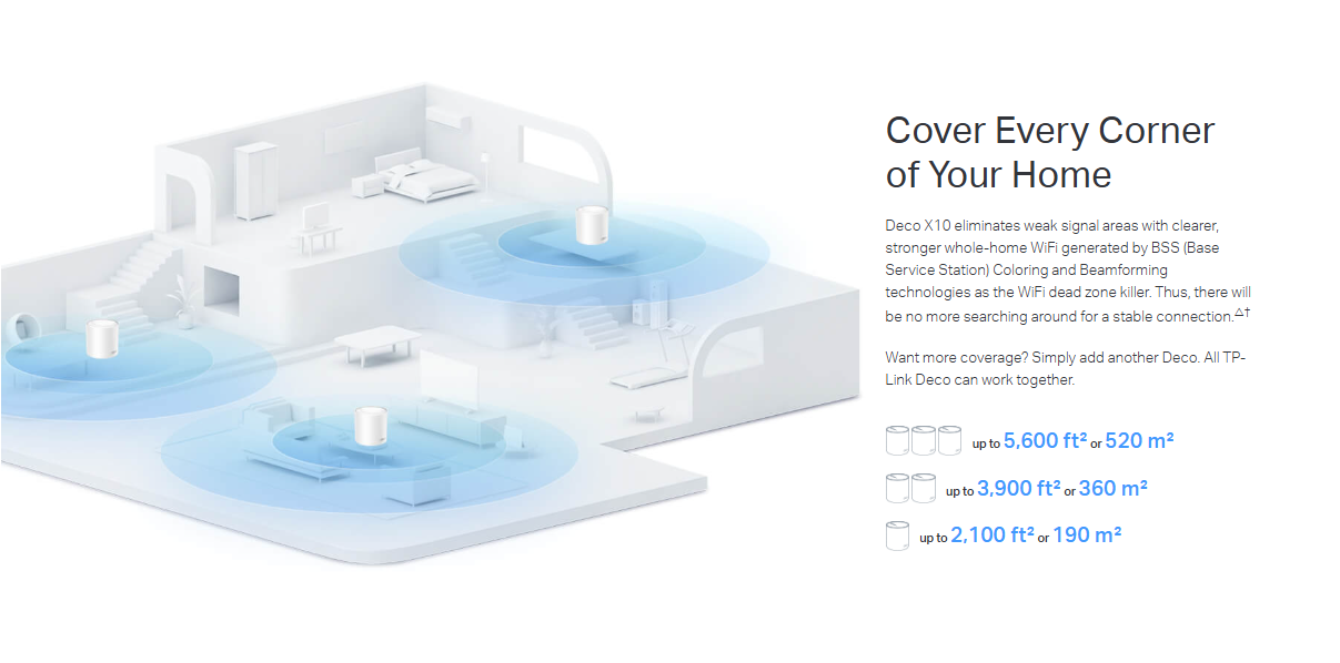 Optional Ethernet backhaul work together to link Deco units to provide seamless coverage