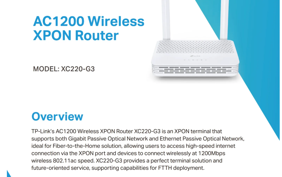 Package Content AC1200 Wireless XPON Router XC220-G3