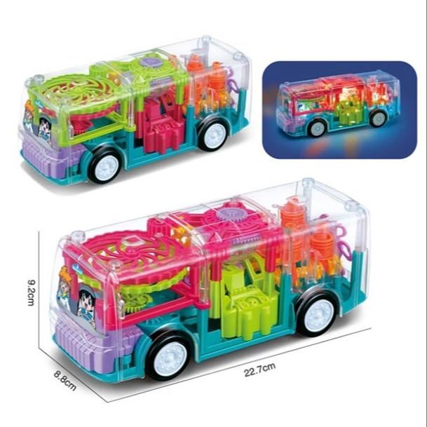 Bring endless fun and learning with the Transparent Gear Bus Toy for Kids! This battery-operated toy features realistic 3D mechanical gears that move smoothly, colorful flashing lights, and delightful musical sounds to keep your child entertained. Designed especially for kids aged 1 year and above, this transparent bus allows little ones to explore how gears work while enjoying bright lights and fun music. The sturdy construction ensures safe playtime, and its engaging design helps develop motor skills and creativity. Perfect as a birthday gift or for everyday play, this toy combines education and entertainment in one exciting package.