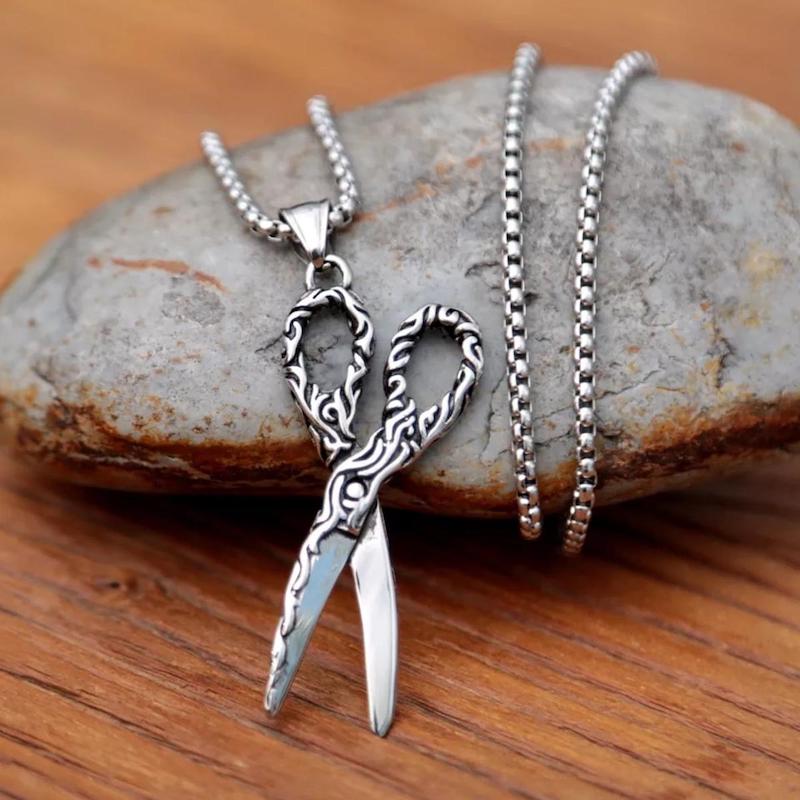 Trendsetter -Vintage Sided Engraving Scissors Men Pendant Necklace Punk for Boyfriend Male Stainless Steel Pendant Men Necklace- Inventive Choice