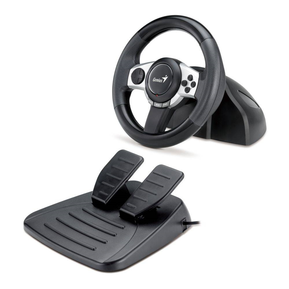 Trio Racer F1 is the latest racing wheel from Genius. The multi-platform design enables it to be compatible with PC, PS3, Wii and GameCube racing games. It has 11 built-in programming buttons that offer commonly used features in racing games such as horn, emergency brake, lights, maps, and more. Specially designed two hand levers on the back of the wheel make it possible to shift gears quickly. And the ergonomic foot pedal includes an accelerator and brake.