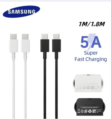 - Samsung USB C to USB C Cable- Rated current : 5A (max)- Genuine Samsung Accessory- Type-C tip charges the NEW smartphones- For syncing & charging (support super-fast charging)- Colour Black/ White- Length 1M- Charge and Sync USB Type-C Devices- Supports up to 3A Charging Output- Reversible USB Type-C ConnectorsThe 3.3 FT black Type-C to Type-C Cable from Samsung allows you to charge your USB Type-C devices as well as sync your photos, music, and data to your existing laptop.This cable supports up to 5A of power output. Additionally, with its reversible USB Type-C connector, you can connect to your device in either direction.