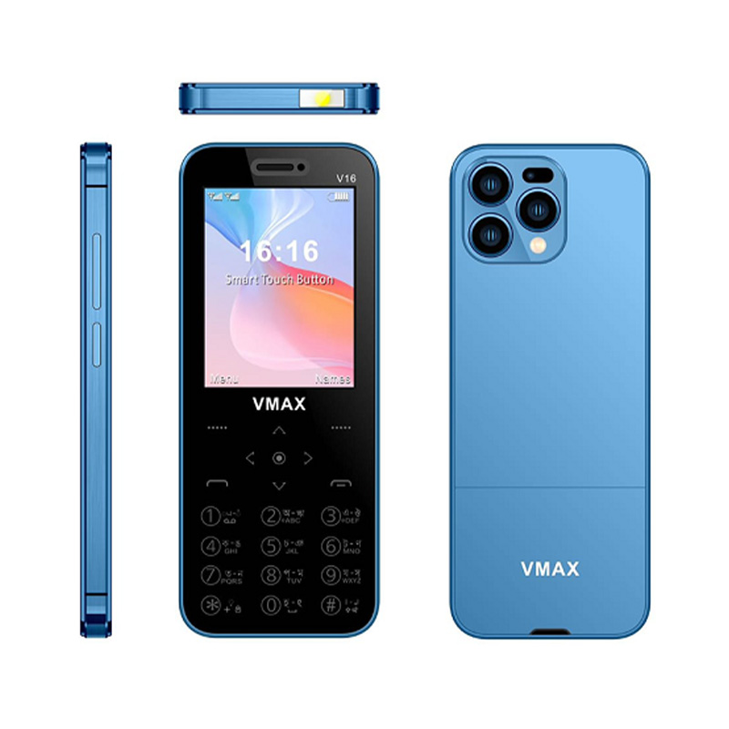 Vmax V16 Ultra Max Touch Button Phone Dual Sim Warranty Blue