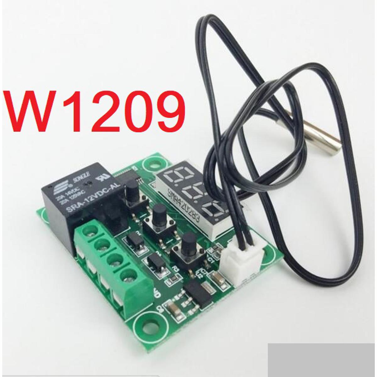 W1209 Digital Temperature Control Switch is a programmable themrostat. The same module can be used in both controlling / maintaining Cold and Hot temperatures. Parameter 0 can be set to either Hot or Cold Control setting. The relay module is based on a microcontroller (MCU) and has 7 user configurable parameters accessible using 3 push buttons.