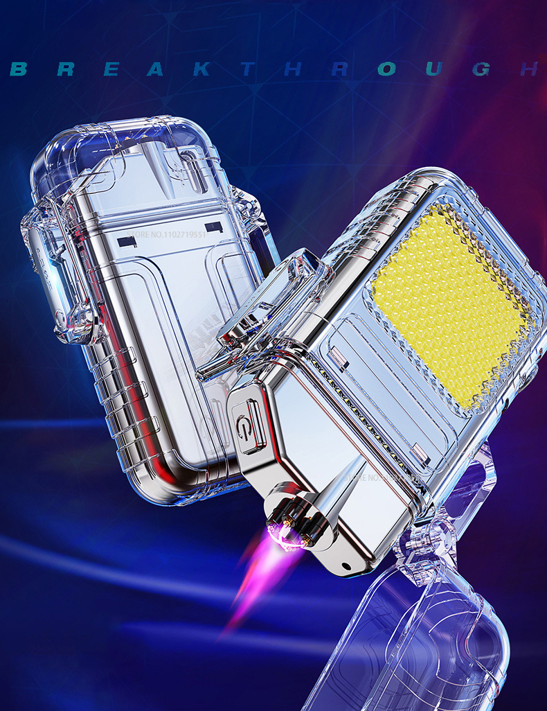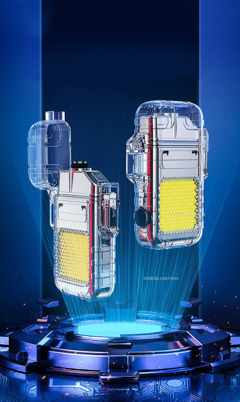 Waterproof Dual Arc Lighter With COB Light Type C Charge Outdoor Camping BBQ Survive Ignition Luminous Electric Pulse Lighter