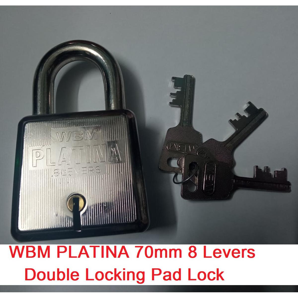 WBM PLATINA 70mm Eight Levers Double Locking Pad Lock Top Security 8 Levers 70mm Padlock With 3 Keys Rust Proof Mechanism Non Interchangeable Key For Shop Garage Warehouse Godown Showroom Locking