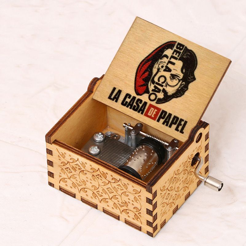 This Wooden Hand Cranked collectible engraved Music Box is a must-have for any Money Heist fan. The intricate design features the iconic La Casa De Papel logo, making it a unique and eye-catching addition to any collection. The hand crank mechanism allows for easy use and the wooden construction ensures durability. Perfect for music lovers and collectors alike, this Music Box is a great way to show off your love for the hit TV show.