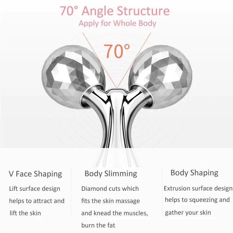 - 1. Produce micro current by absorbing solar energy to activate cells, and promote the metabolisom of skin.2. The roller bolls designed by simulating the massage gesteures of beautician.3. 288 cut faces, ready for every corner of the body.Cautions before usage1. Take off the accessories such as necklace, earrings.2. Piled up hair or firm them with hair band, to avoid hair entaglement, and the rolling will be more smooth. Use the hairpin for short hair.3. Pay attention to the hair around the ears to avoid entanglement.4. For dry or sensitive skin, please paint some lotion before usage.Product Description:Material: ABS + metalProcess: plating Product Size: 14.5*4.8*3.6 cmPackage Included: 1 x 3D Roller Massager 1 x User Manual